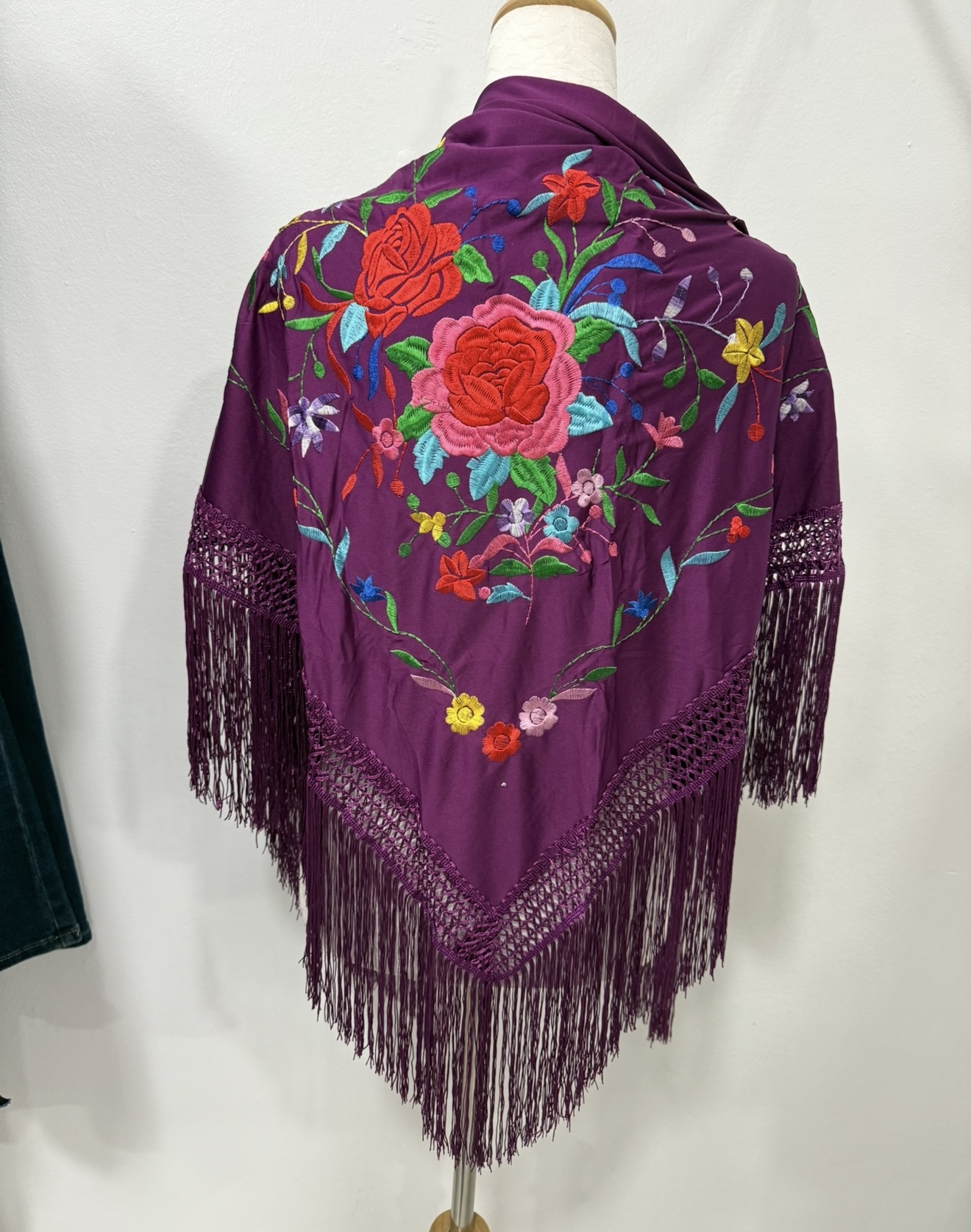 Mantón malva bordado en colores