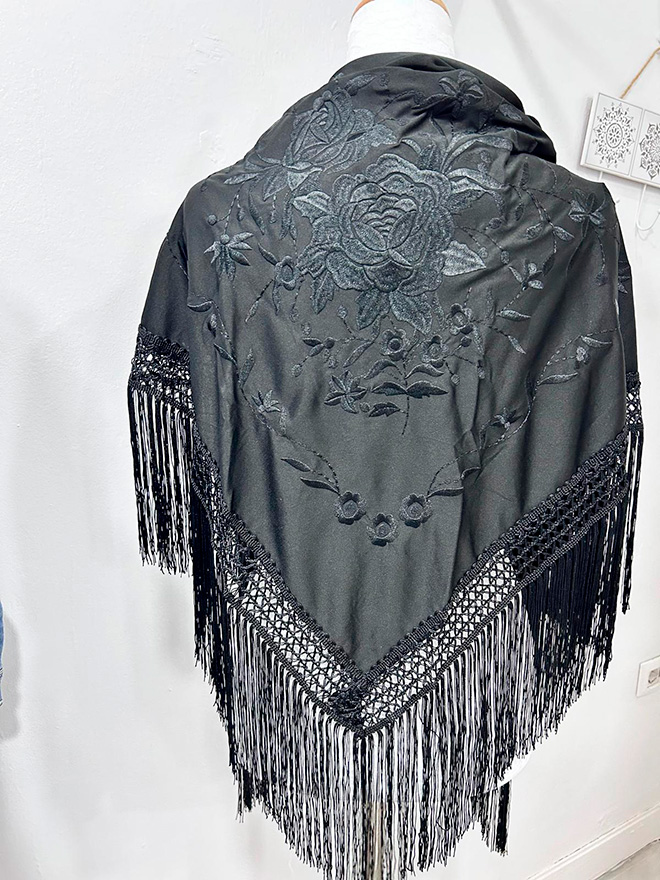 Mantón negro bordado en negro